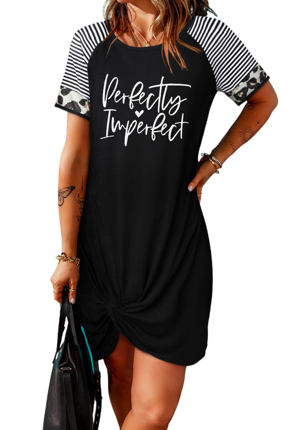 Black Perfectly Imperfect Twist Knot Striped Short Sleeve Mini Dress