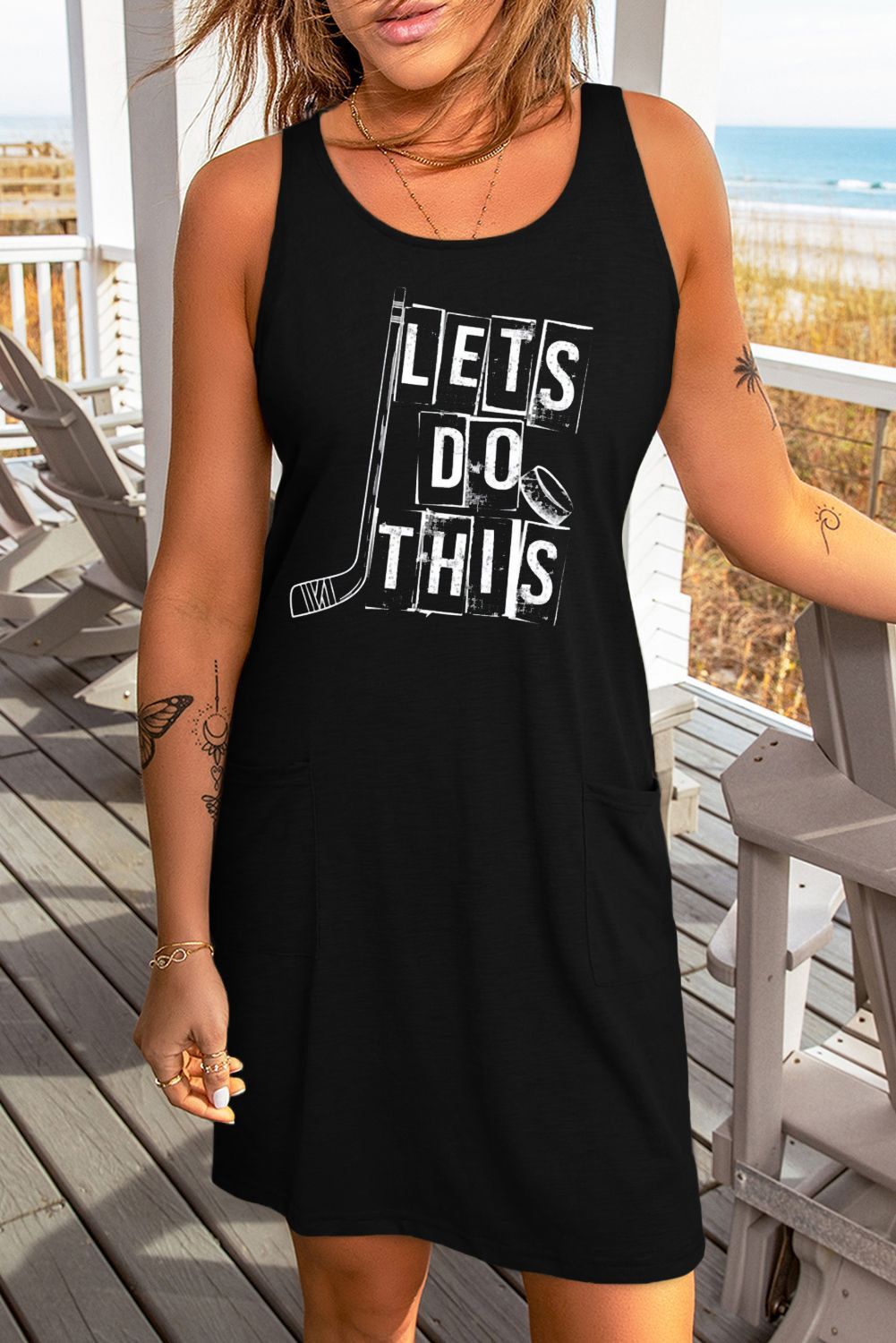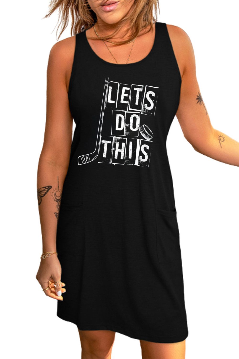 Black Lets Do This Ice Hockey Print Sleeveless T Shirt Dress