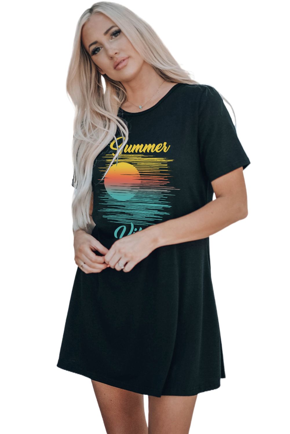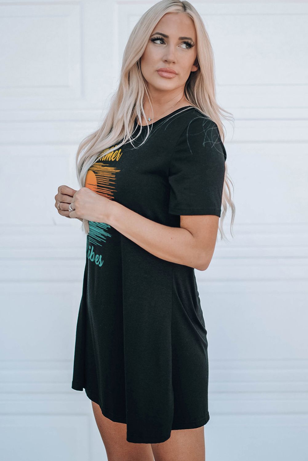 Black Summer Vibes Color Block Short Sleeve Mini Dress