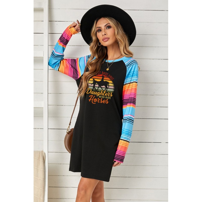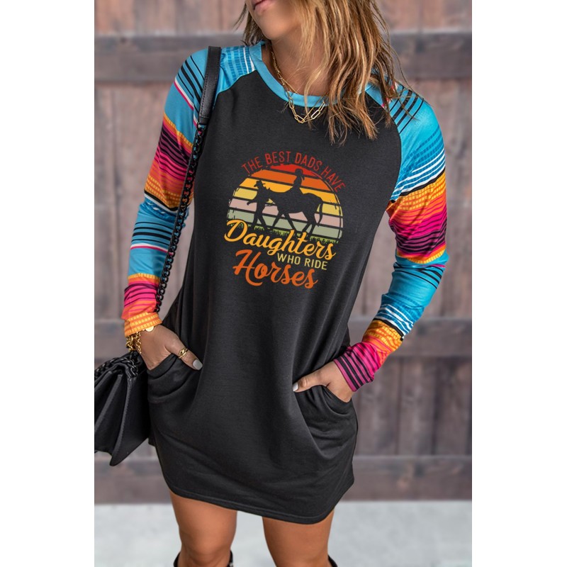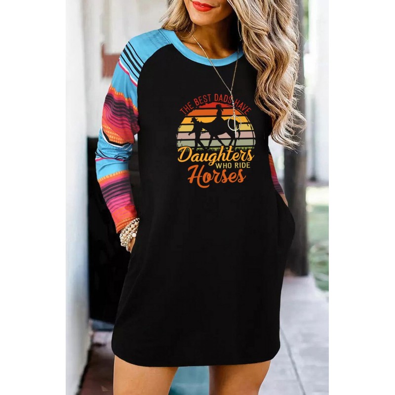 Black THE BEST DADS HAVE Daughters WHO RIDE Horses Serape Sleeve Patchwork Short Dress