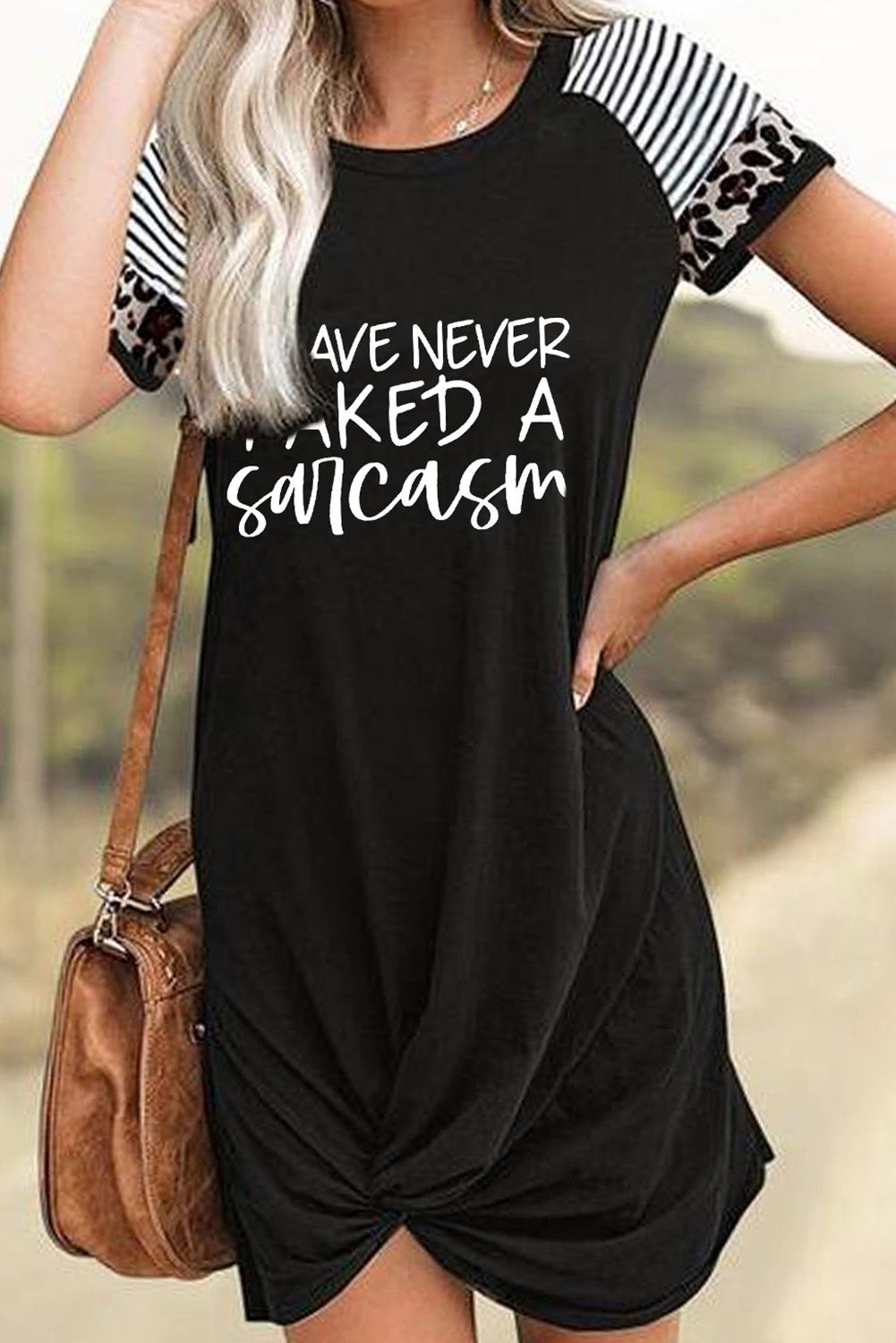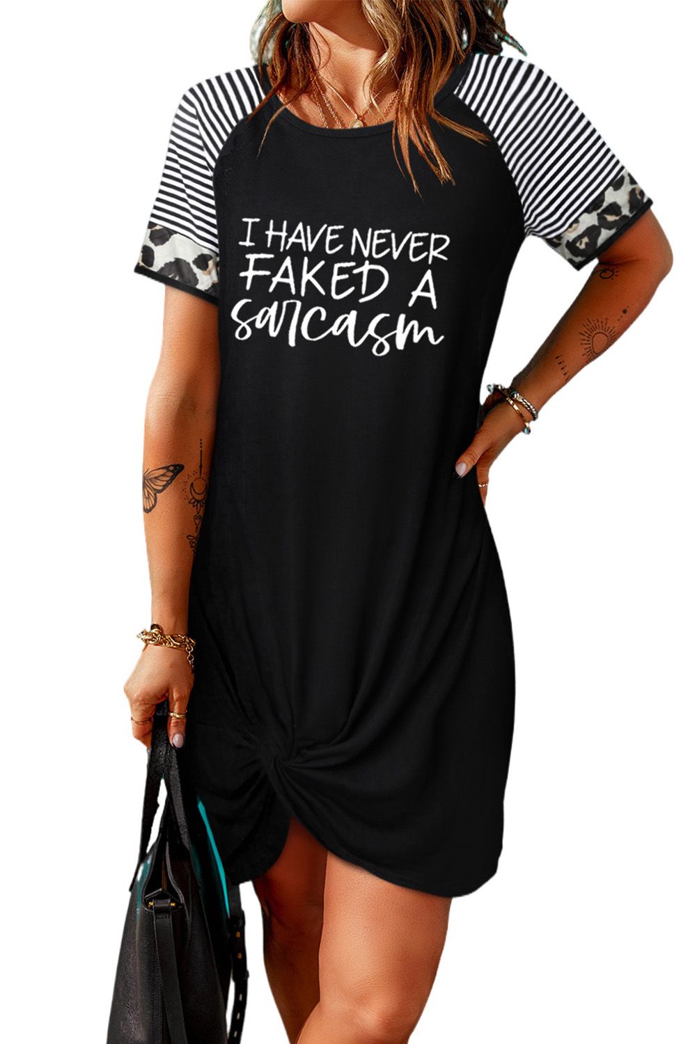 Black Letters Print Twisted Patchwork Sleeve Mini Dress