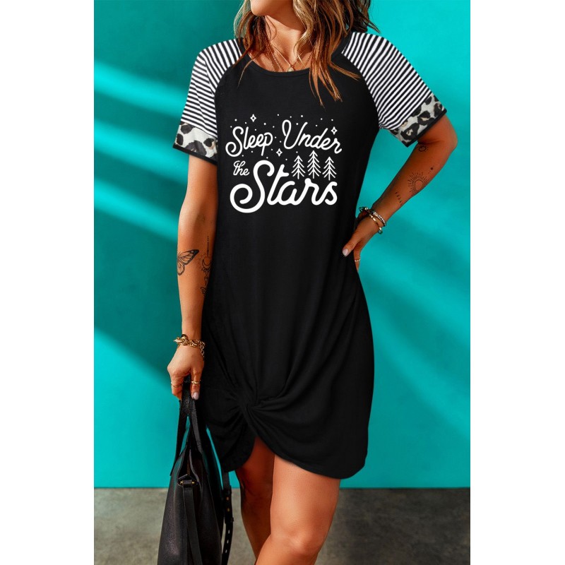 Black Sleep Under the Stars Romantic Graphic T Shirt Dress