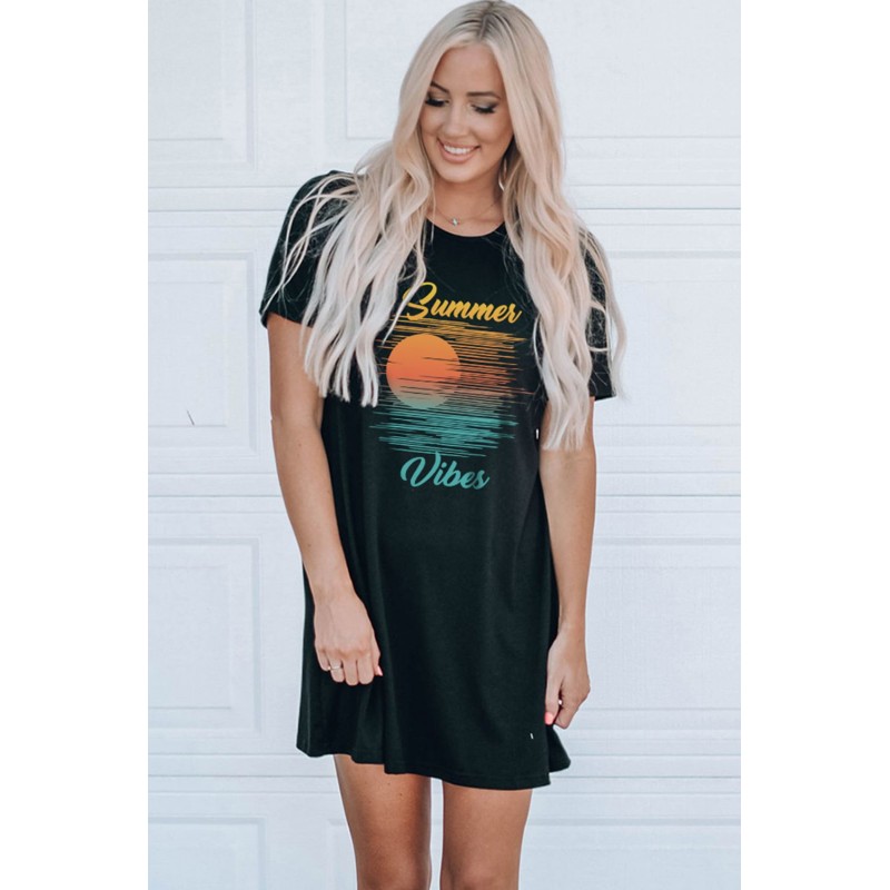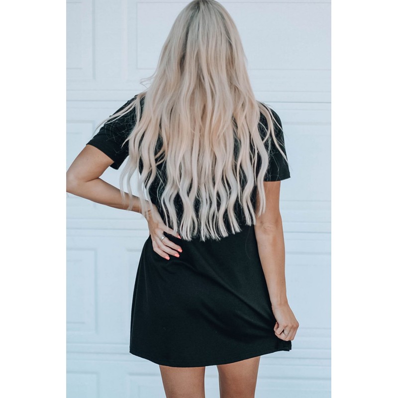 Black Summer Vibes Color Block Short Sleeve Mini Dress