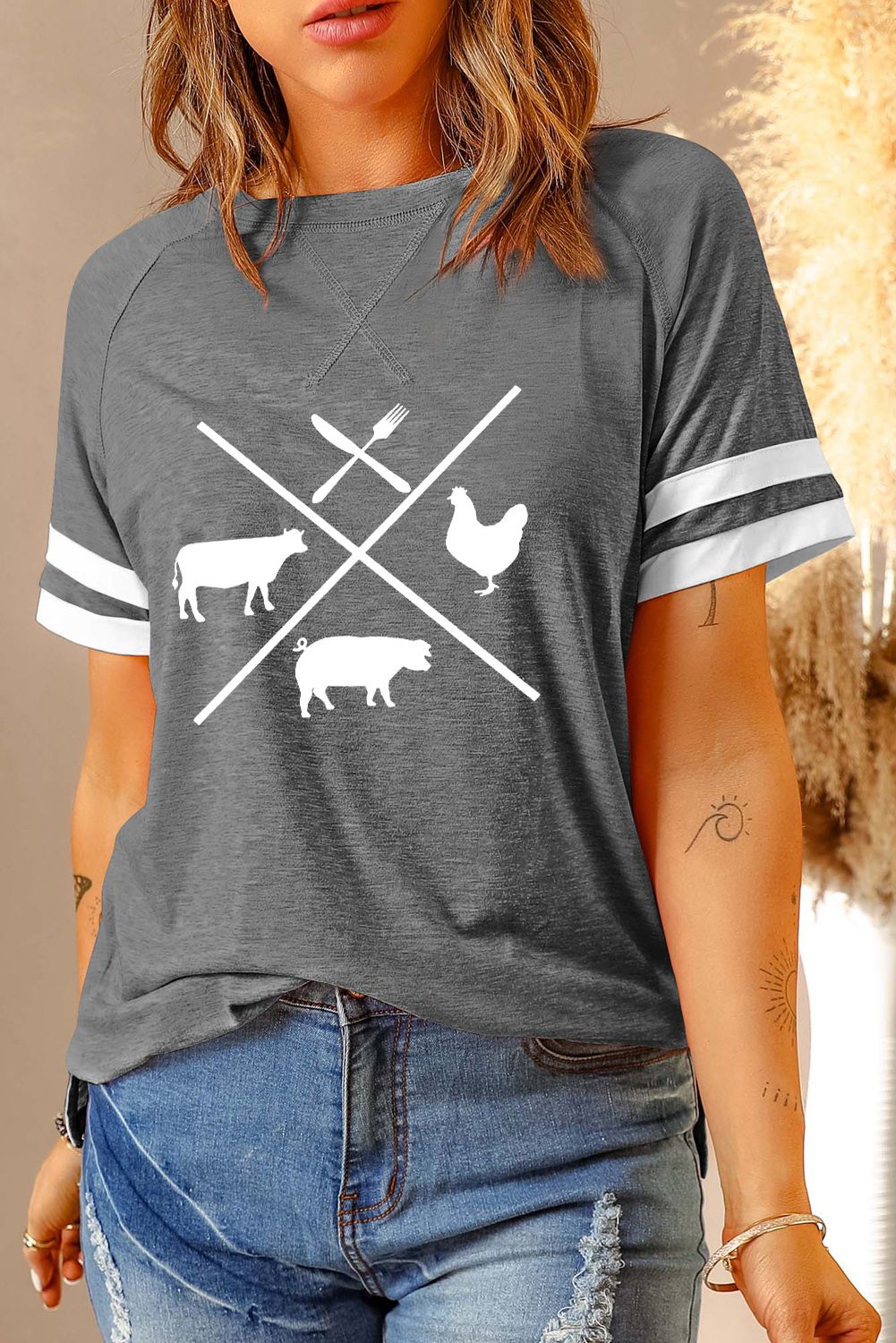 Gray Farm to Table Funny Animal Graphic T Shirt