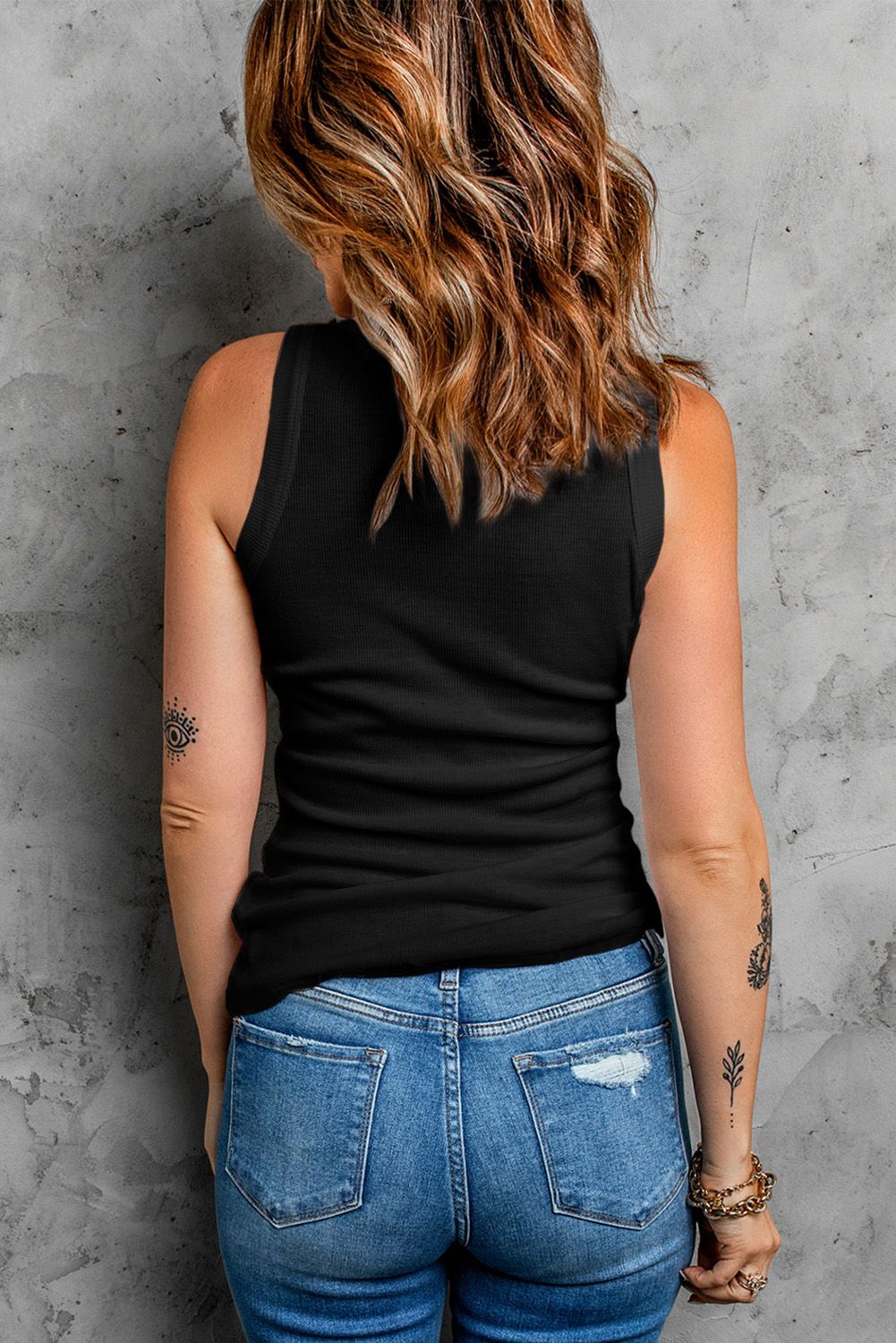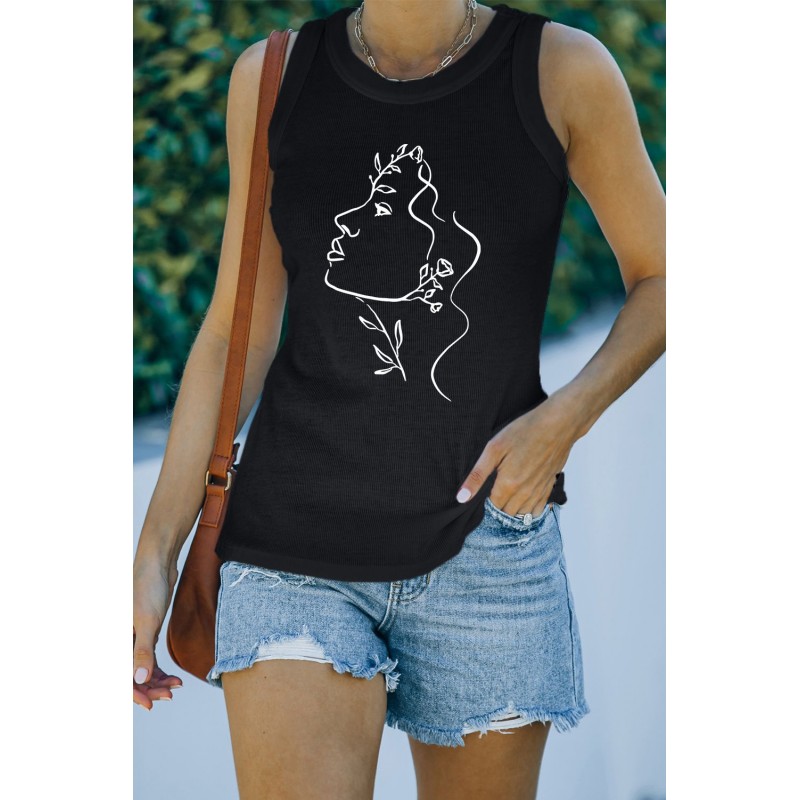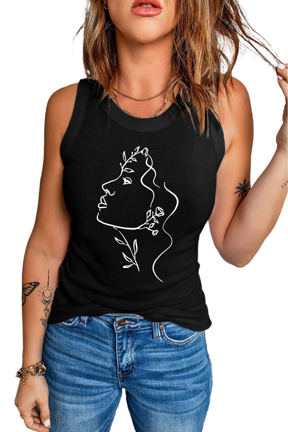 Black Casual Portrait Graffiti Print Graphic Tank Top