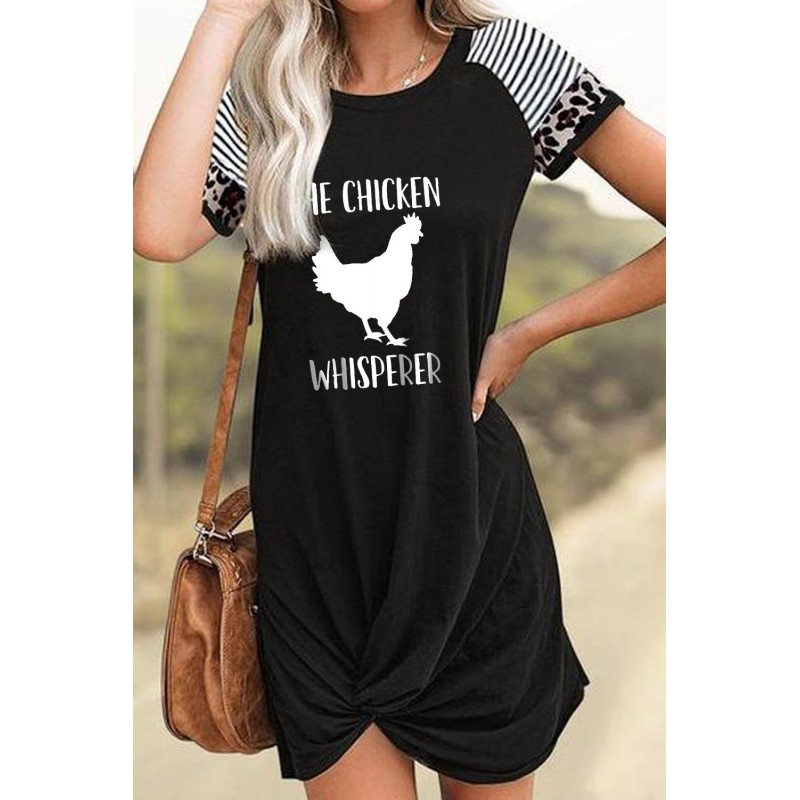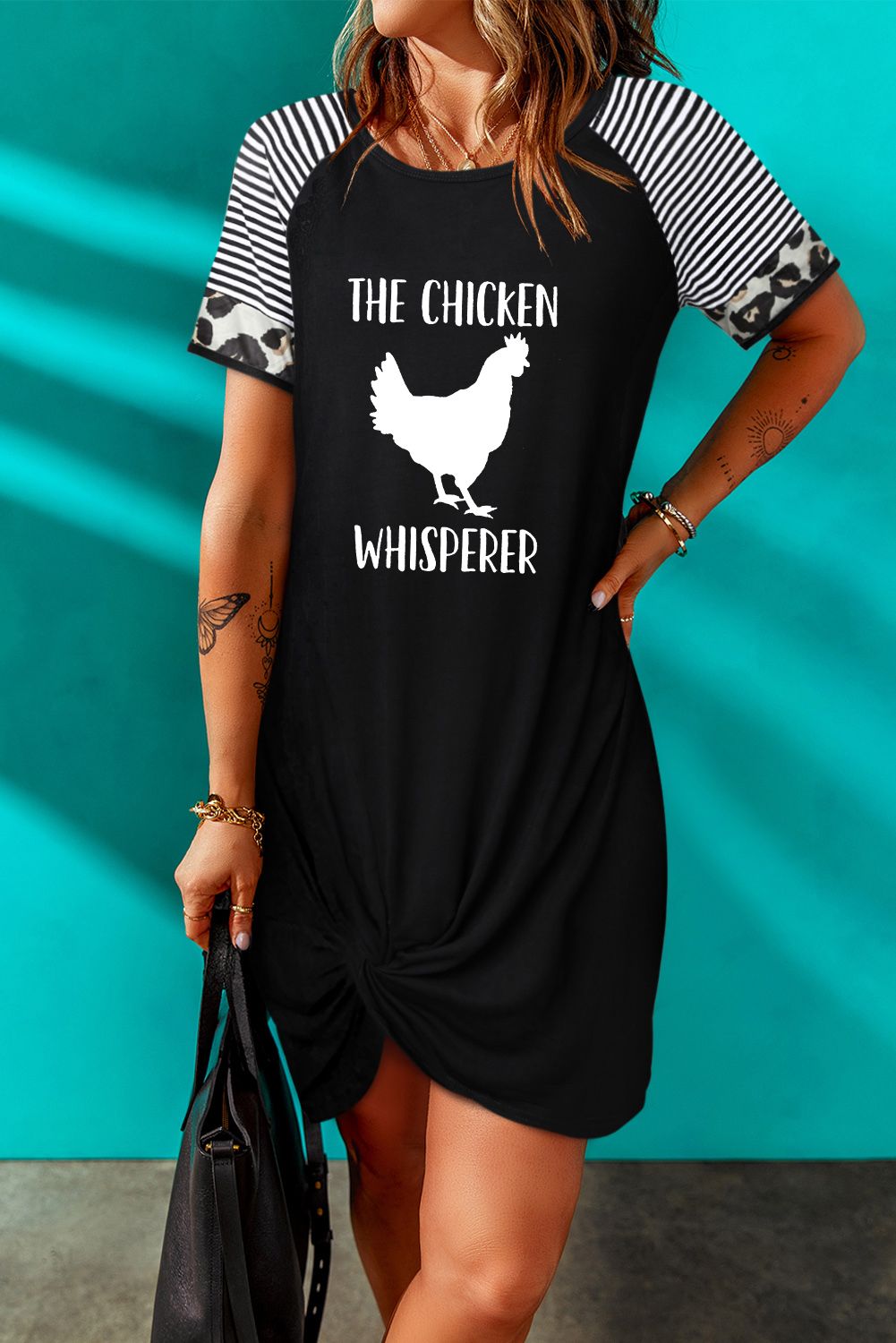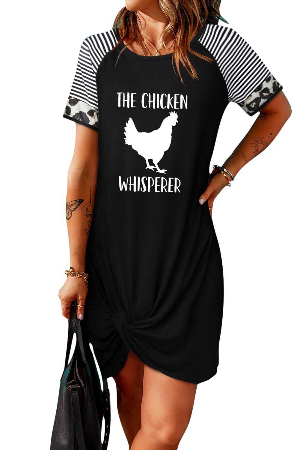 Black Chicken Whisperer Graphic Striped Sleeves T Shirt Dress