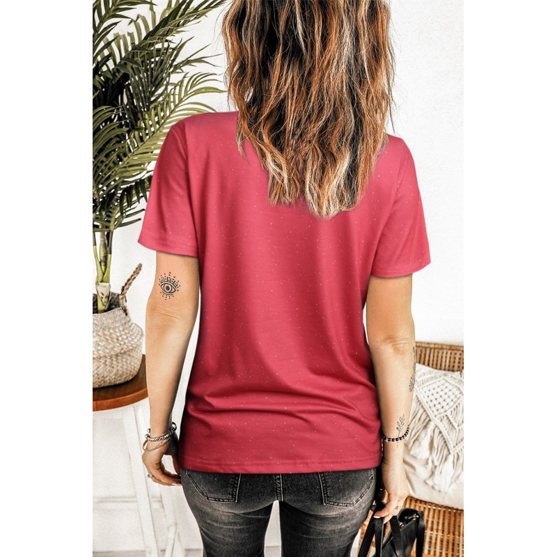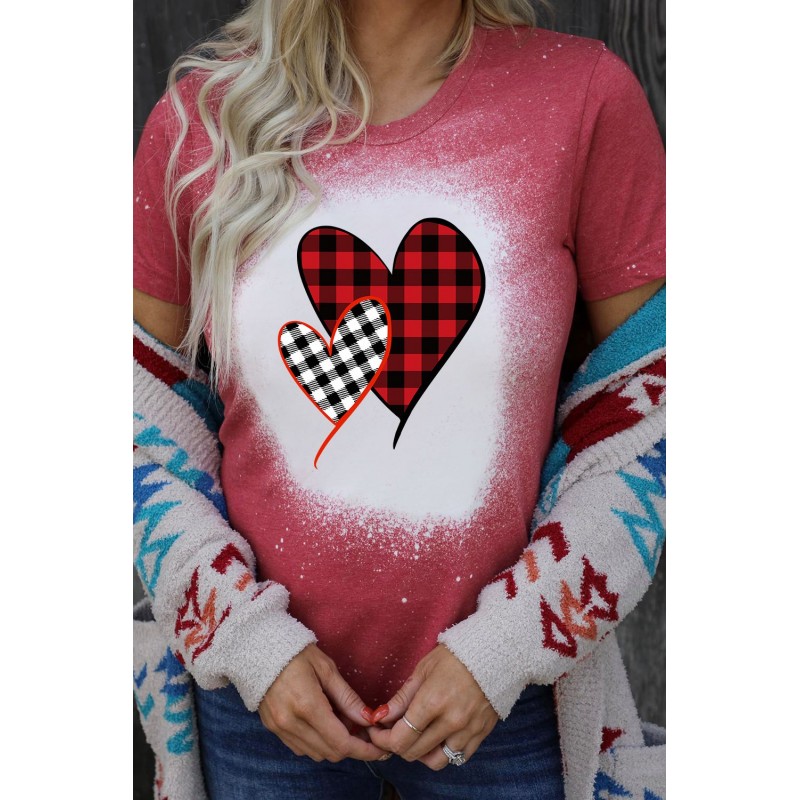Valentine Plaid Heart Shaped Print Crew Neck Short Sleeve T-shirt